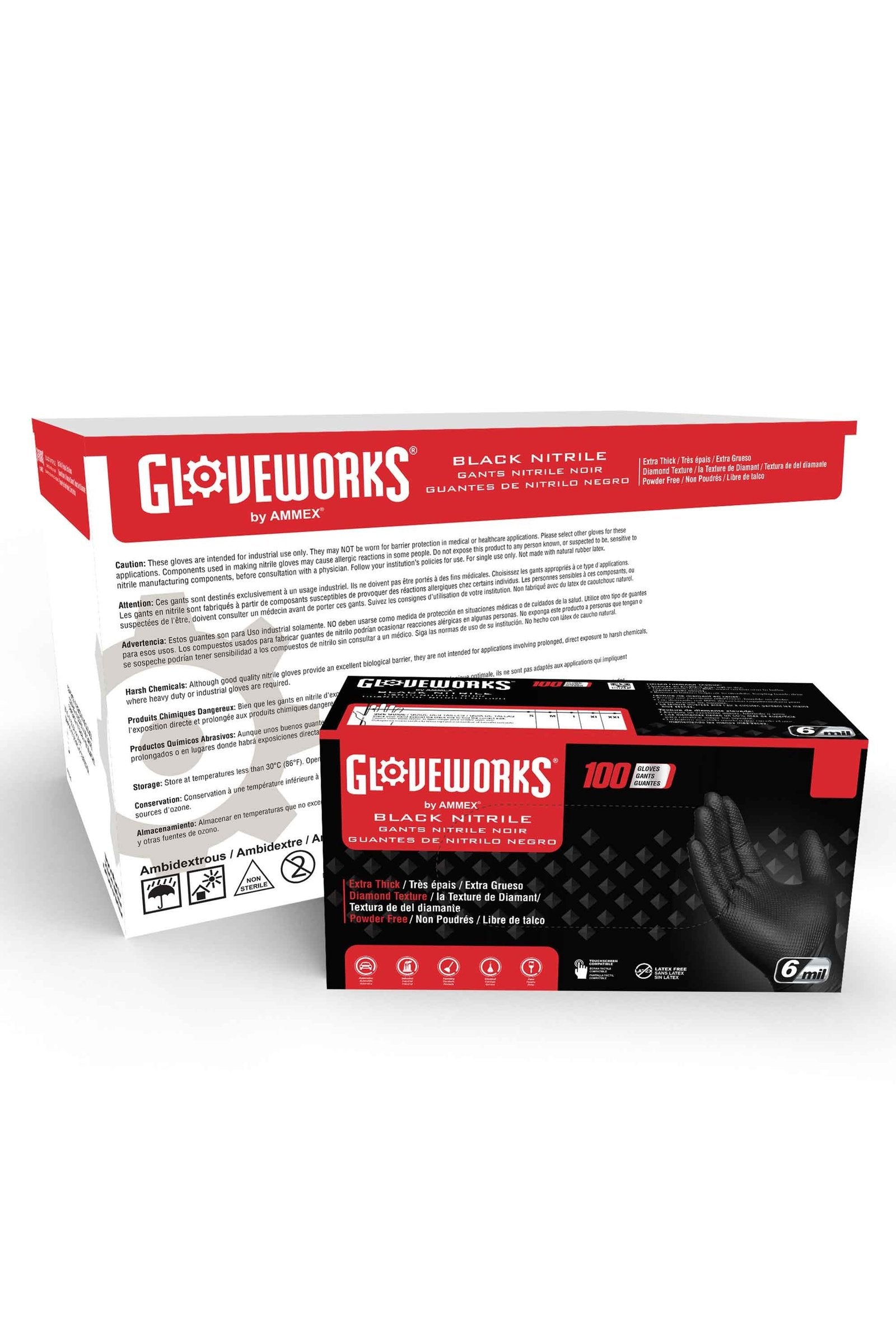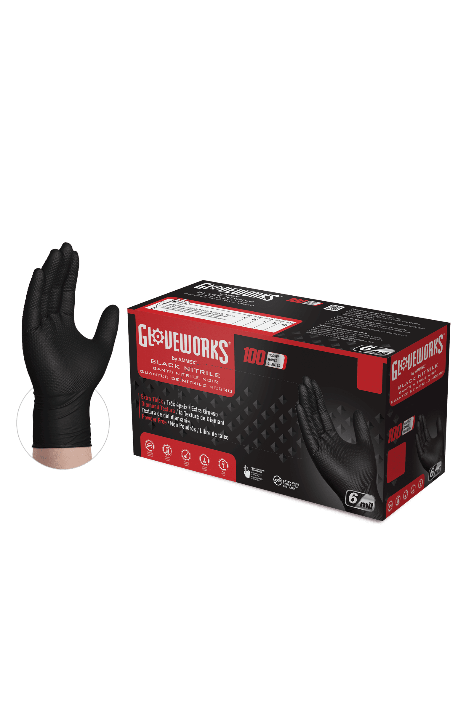 Gloveworks HD 6 Mil Black Raised Diamond Texture Nitrile Disposable Industrial Gloves